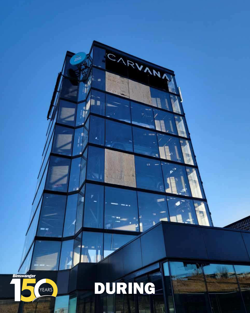 When an emergency happens at your business, like at this Carvana vehicle vending machine, Binswanger Glass is there for you. If your company needs an Emergency Board Up Service, just call 800-365-9922 (24/7) and our professional team will provide peace of mind.