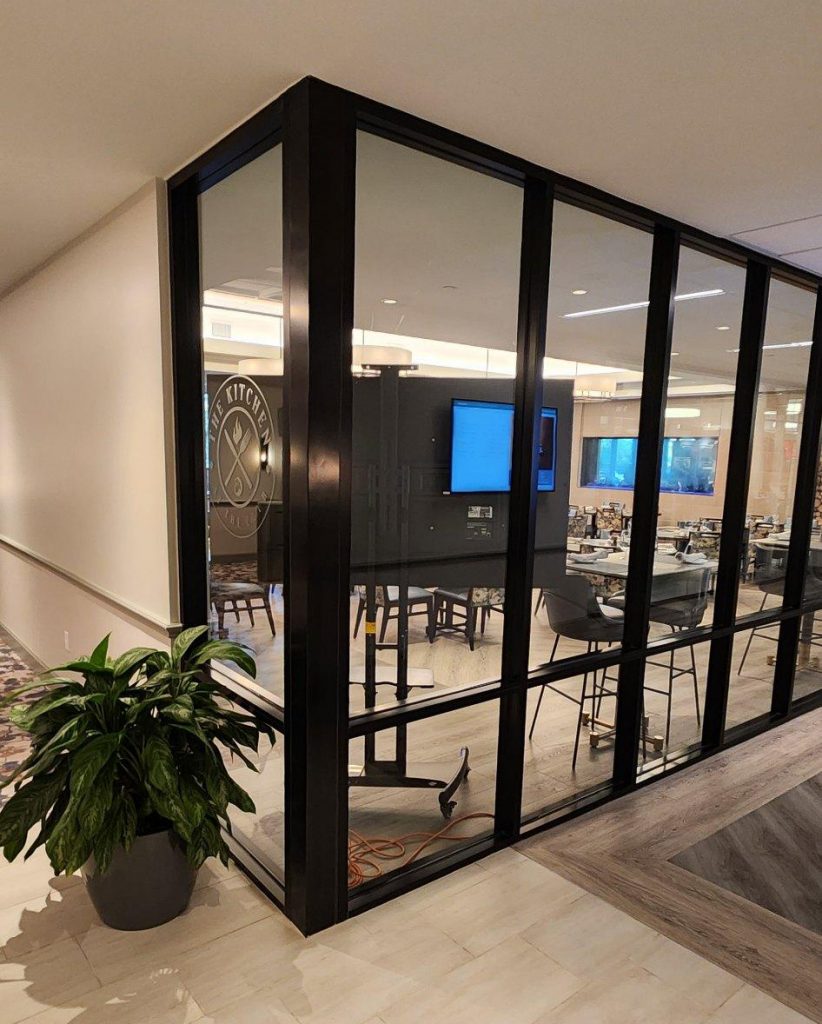 - Interior: Tubelite Inc. 4500 Series Storefront System with 3/8″ Clear Glass